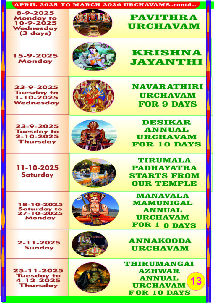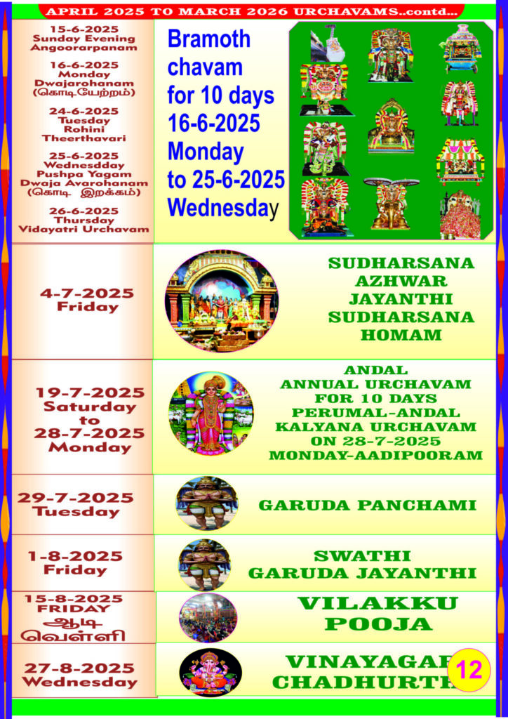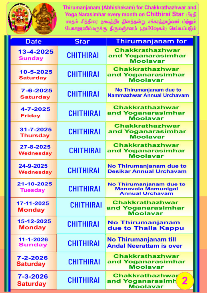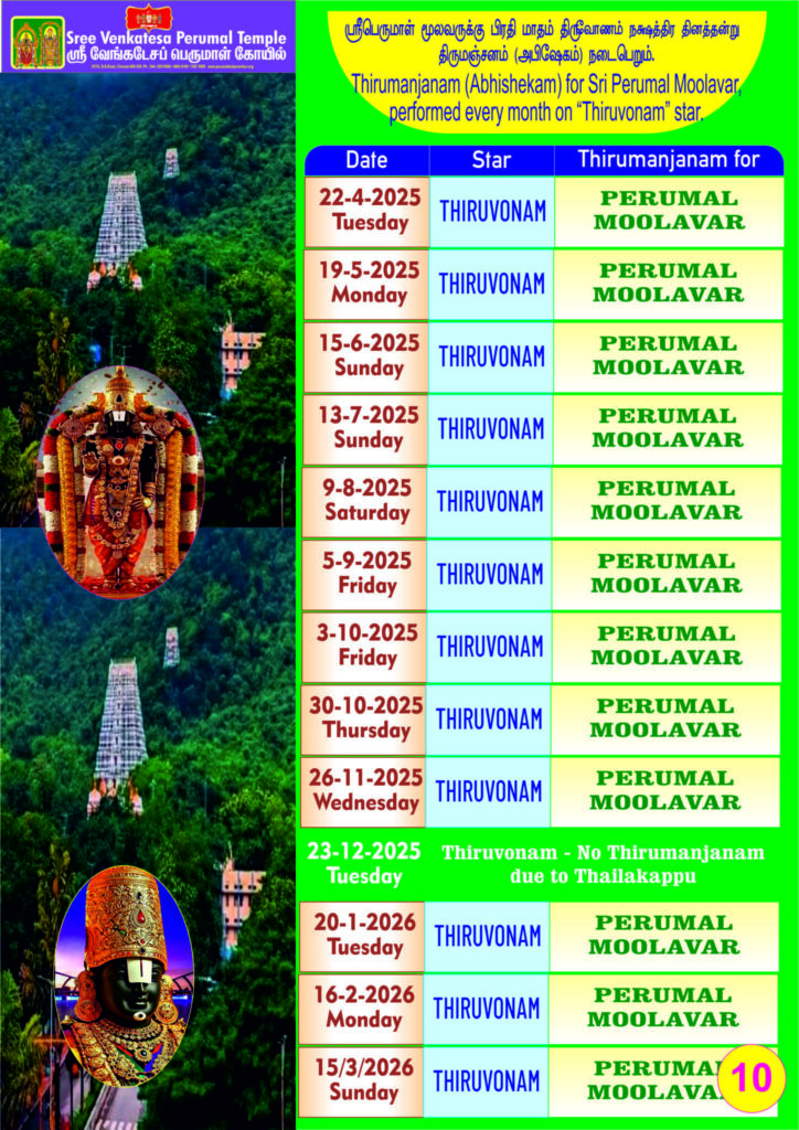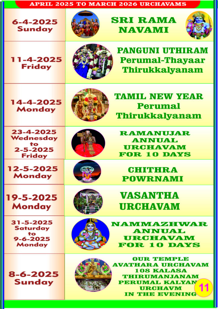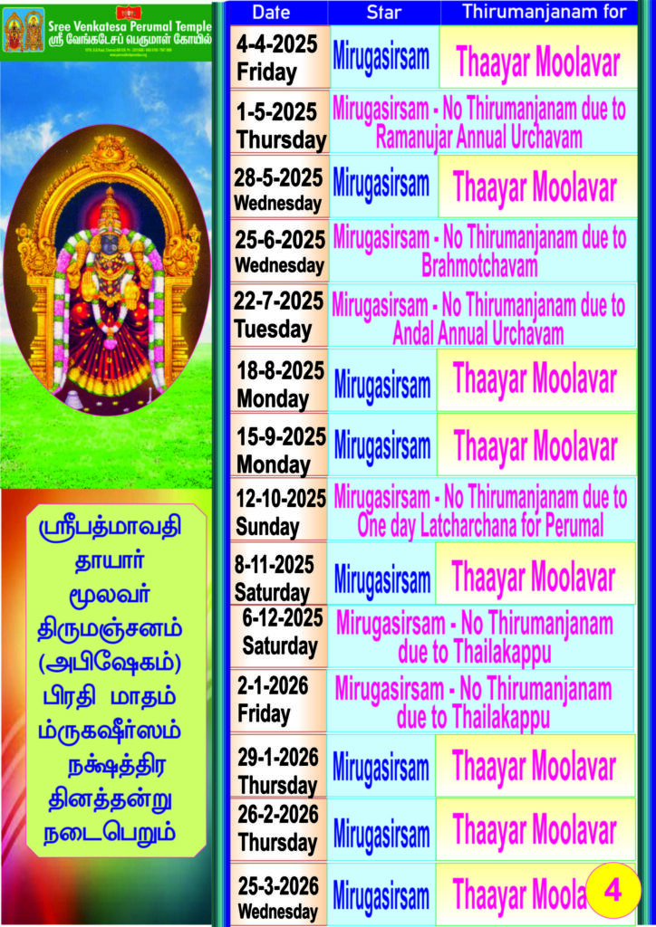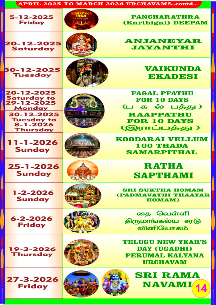 Sree Venkatesa Perumal Koil - 2025-2026 - Urchavams and Thirumanjanams