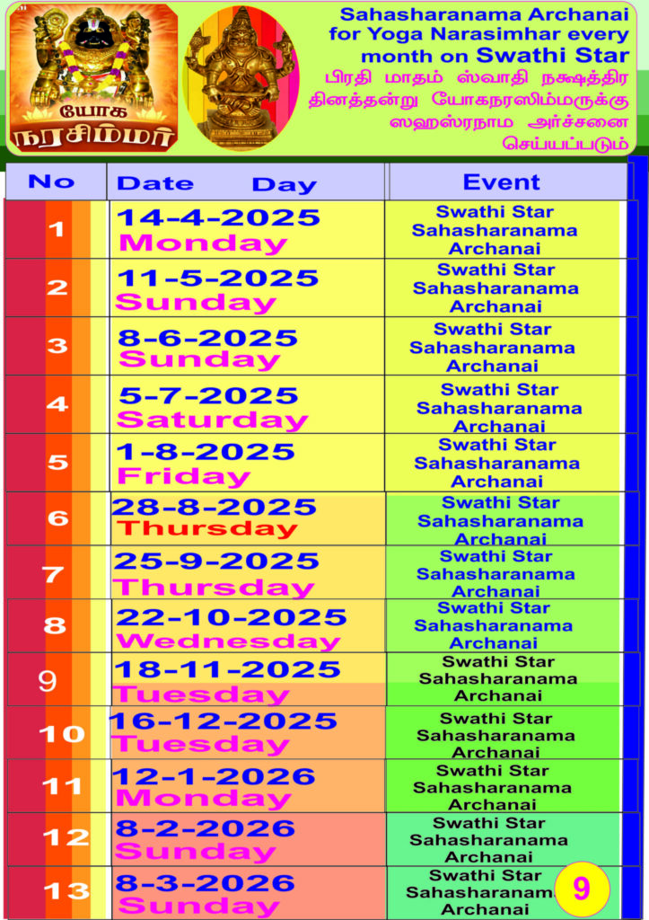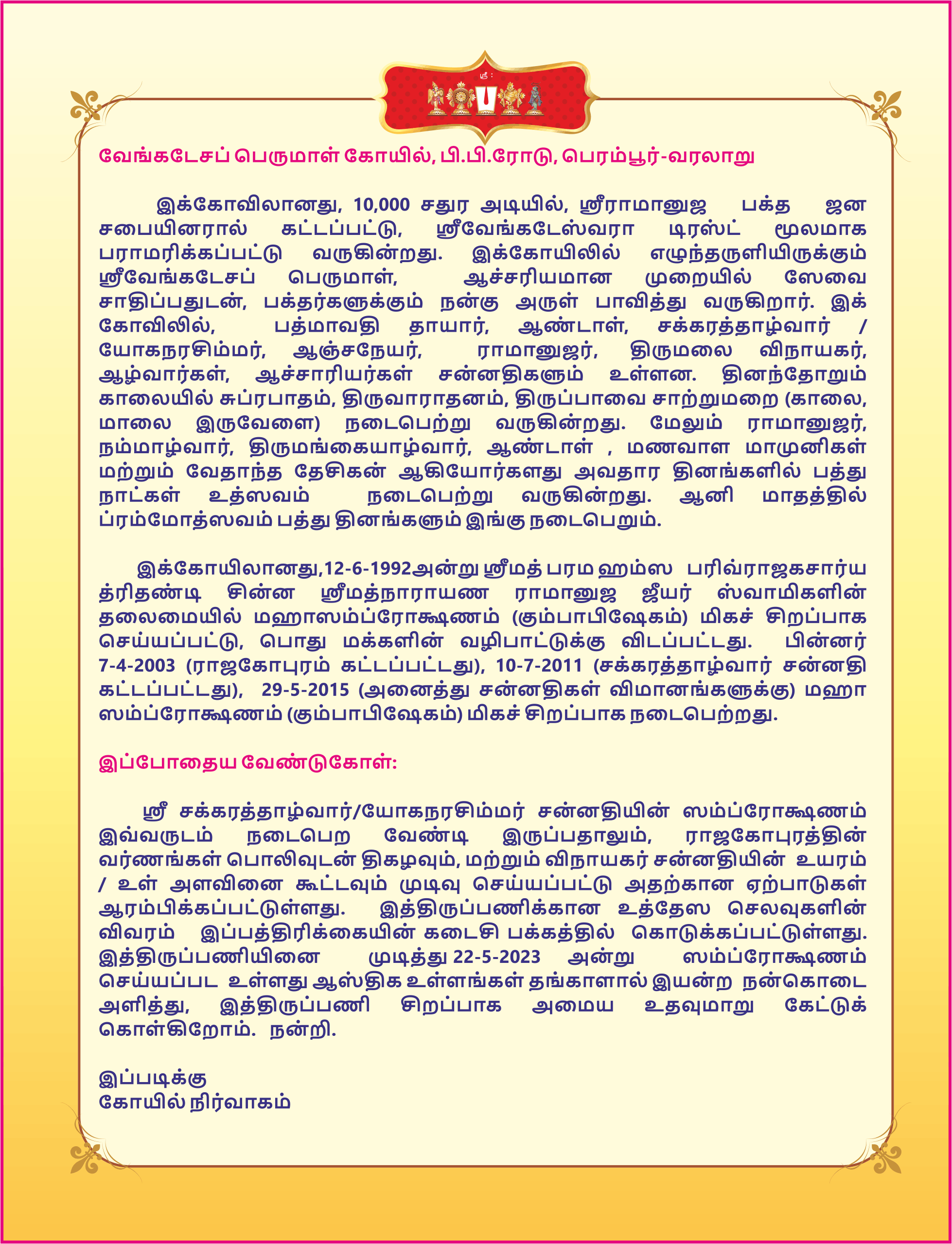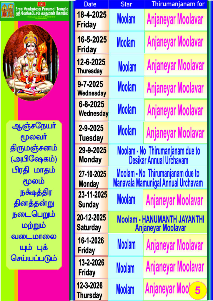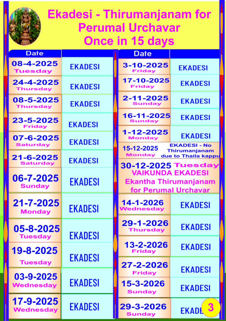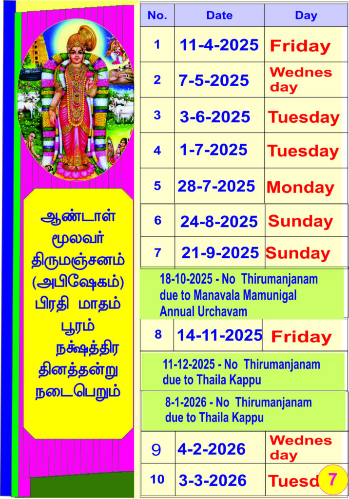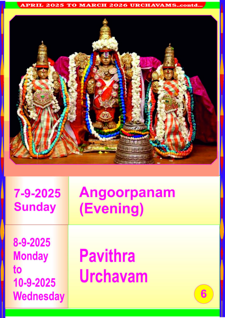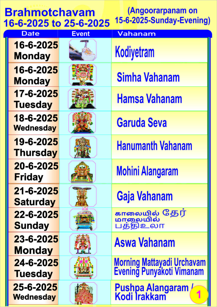 Sree Venkatesa Perumal Koil - 2025-2026 - Urchavams and Thirumanjanams